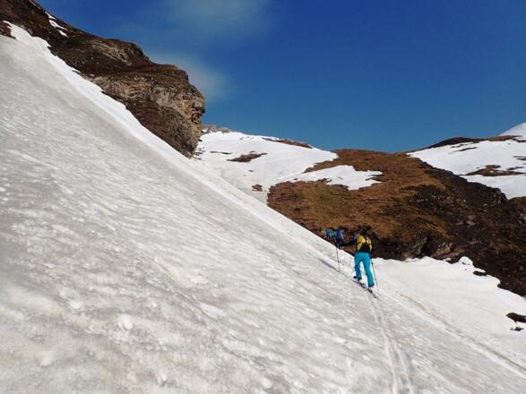 Man kann den Margrötzenkopf auch auslassen und spart so ca. 250 Höhenmeter. Allerdings ist die Abfahrt von diesem Gipfel ins Guttal bei ausreichender Schneelage auf jeden Fall lohnend.