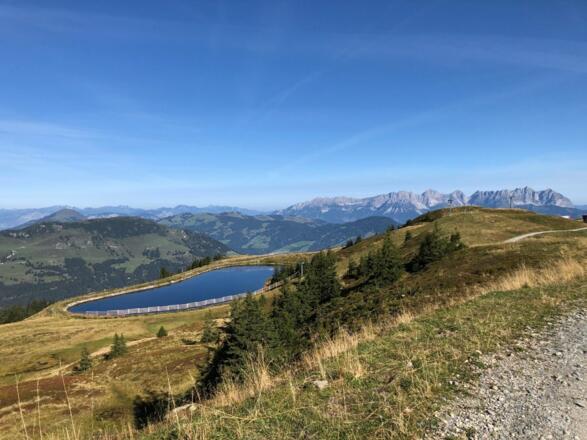 Start der Wanderung ist die Bergstation Hahnenkamm. Von dort geht es über das Sommererlebnis Streif Richtung St. Bernhard Kapelle. Der nächste Meilenstein der Wanderung ist der Ehrenbachhöhesee - hier können Sie Ihre Füße kurz erfrischen. Von der Ehrenbachhöhe geht es über Hochbrunn zum Jufenkamm und den Speicherteichen Brunn und Usterkarsee. Nun folgt der größte Anstieg der Wanderung auf den Schwarzkogel (Trittsicherheit ist Voraussetzung!). Nach kurzer Rast auf dem Berggipfel gehts hinab zur Blauen Lacke - ein wunderschöner Bergsee mit türkis-blauen Wasser. Durch den Saukasergraben geht es dann hinab ins Tal nach Jochberg. Von dort können Sie mit dem Bus wieder retour nach Kitzbühel fahren.