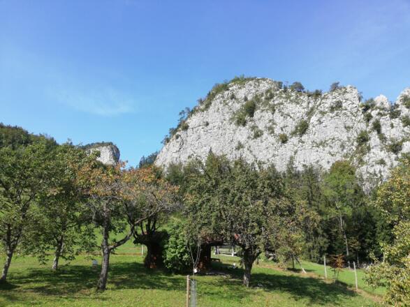 Wir starten beim Stille Nacht Museum in Hallein (alternativ kann auch ein Stück weiter oben auf einen Parkplatz geparkt werden). Hier geht es etwas steiler bergauf an einer offenen Kapelle vorbei. Dann ein kurzes Stück entlang der Straße (hier ist die Parkmöglichkeit) um dann rechts in den Wald einzubiegen. Hier geht rechts unser Pfad steil den Wald hinauf. Vorbei an der Runine Thündl erreichen wir eine Lichtung und folgen den immer sehr gut markierten Weg rechts in den Wald.
