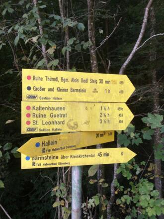 Direkt über Hallein drohnen der große und der kleine Barmstein mit ihren eindrucksvollen fast senkrechten Wänden. Diese Runde führt uns vom Zentrum (auch vom Bahnhof Hallein nur ein kurzes Stück länger) direkt auf beide Gipfel. Der Weg ist teilweise sehr steil aber die jeweiligen unmittelbaren Anstiege auf die Gipfel ohne technsichen Schwierigkeiten zu meistern.