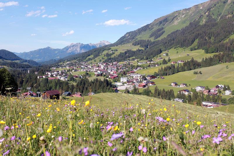 Sie fahren bis zur Ortsmitte von Riezlern und biegen gegenüber der Kirche/ Gemeindeamt