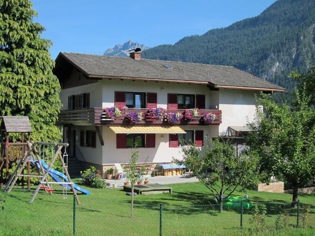 Unser Einfamilienhaus befindet sich in sonniger u. ruhiger Lage, umgeben von der schönen, im Winter verschneiten, Bergwelt des Montafons.