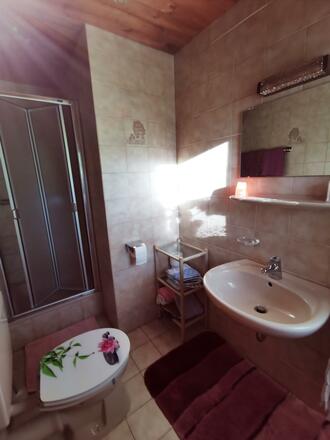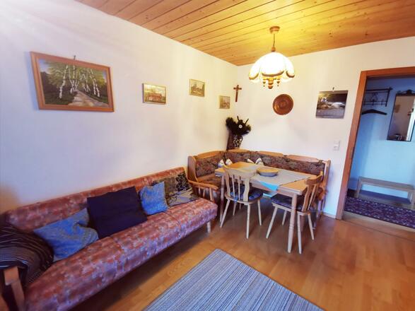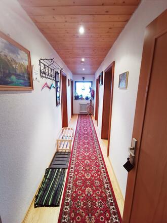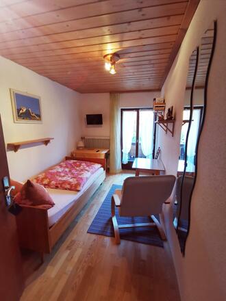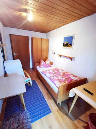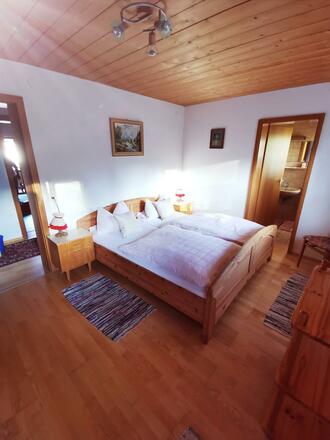 Ausstattung unserer ruhigen Ferienwohnung: Wohnküche mit SAT-TV und Balkon, 1 x Doppelzimmer mit DU/WC, 1 x Einzelzimmer mit DU/WC, SAT-TV, Balkon mit Bergblick. Liegewiese und eigener Parkplatz. 10 Min. zum Skilift, 5 Min. zur Loipe.