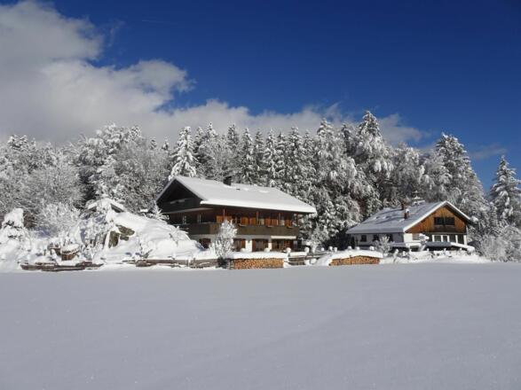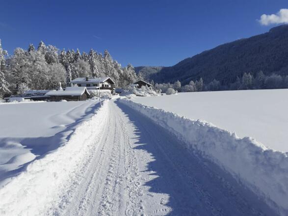 Das Haus im Hölzl liegt auf einer privaten Zufahrt abseits vom Ort in ruhiger Lage im Wald- und Weidebereich.