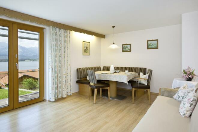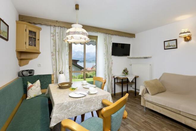 Ruhige Lage, mit herrlichem Blick auf den See und Berge. Ferienwohnung mit Terrasse, Wohn-/Schlafraum getrennt, Sat-TV, Nichtraucherhaus, Parkplatz am Haus. Die Betten sind bezogen, Handtücher liegen auf und werden wöchentlich gewechselt. Waschmaschine- u. Trocknermitbenutzung gegen Gebühr möglich.SonstigesParkplatz,Sat-TV, W-Lan, Wäsche: Betten sind bezogen, Handtücher liegen auf (Wechsel wöchentlich).