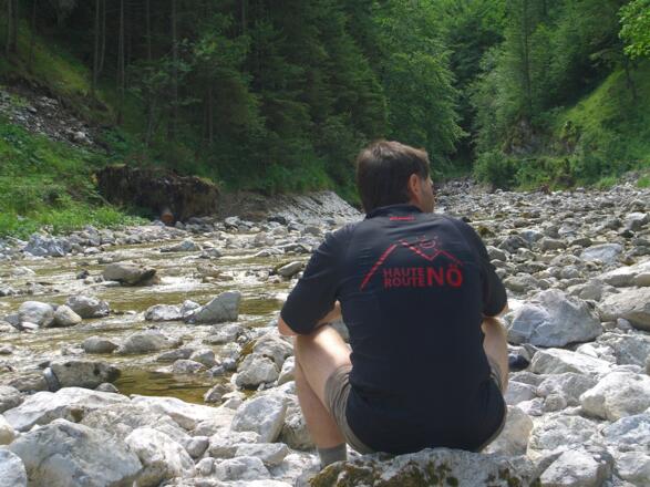 Im Strandbad Hollenstein lassen sich müde Muskeln in der traumhaften Ybbs nochmal abkühlen für das letzte Teilstück über die Voralpe (Gipfel Stumpfmauer in 1.770m) im Dreiländereck Nö, Oö und Stmk. Die Höhenmeter sind geschafft und der Abstieg auf steirischer Seite endet am Endpunkt der Haute Route Niederösterreich, beim Bahnhof Altenmarkt bei St.Gallen. Die Zug-heim-reise beginnt hier.
