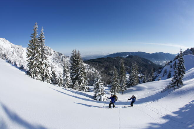 Der Skitouren-Klassiker über dem Tegernseer Tal ist fast immer gut gespurt und verläuft in der ersten Hälfte auf der ausgeschilderten Aufstiegsspur am rechten Pistenrand. Dementsprechend muss man sich je nach Schneelage erst im obersten Teil – im kurzen Steilhang bei den Rauheck-Almen und beim finalen Gipfelanstieg – vor eventuellen Lawinen in Acht nehmen. Der Übergang vom Ost- zum Hauptgipfel ist in dessen Randbereichen ein wichtiges Überwinterungsgebiet für Rauhfußhühner. Deshalb sollte der breite Grad nur in seiner freien Mitte oder noch besser überhaupt nicht begangen werden, Endpunkt ist also im Winter der Ostgipfel. Abfahrtsvarianten über den Süd- und Nordhang unbedingt vermeiden!