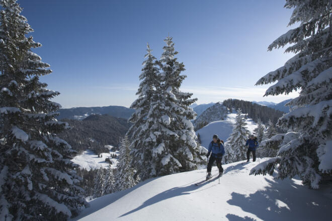 In Waldgebieten und an der Waldgrenze sollten Schneesportler*innen auf den üblichen Ski- und Schneeschuhrouten, Forst- und Wanderwegen bleiben, genügend Abstand zu Baum- und Strauchgruppen einhalten, Aufforstungen und Jungwald schonen.