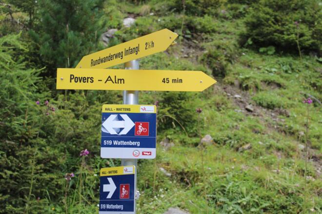Diese im Winter viel begangene Tour bietet im Sommer Einsamkeit pur. Ein wenig Orientierungssinn sollte man mitbringen, da das Gipfelziel bis auf ein Schild bei der Povers Alm nicht beschildert ist und die Markierungen stark verblichen. Steinmandln markieren zuverlässig den Weg.