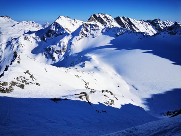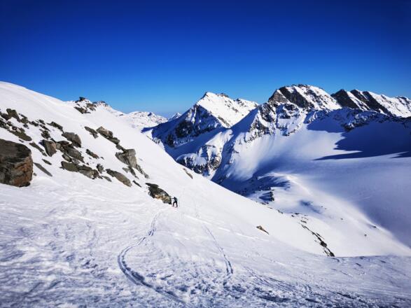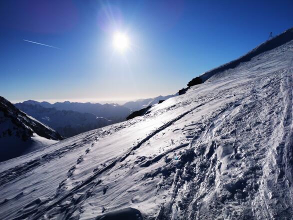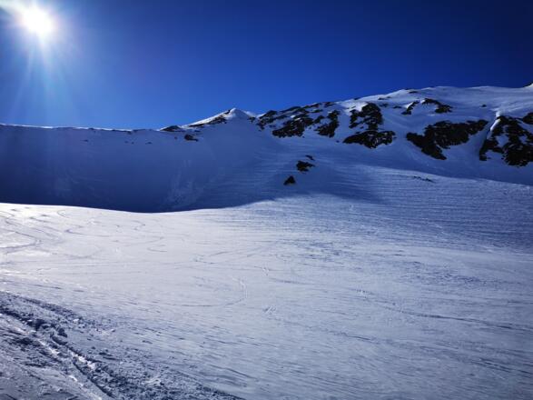 Abfahrt findet über den den westlich Gletscher bis auf ca. 2700m statt und danach Richtung Süden durch das Fleißtal zum Ausgangspunkt.