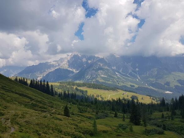 Mit dem Wanderbus gelangen Sie zum Berghotel Arthurhaus, dem Ausgangspunkt der ersten Etappe. Entlang einer gemütlichen Forststraße führt der Weg zunächst zum Gipfel des Hochkeils, wo Sie einen herrlichen Blick auf den Hochkönig und die umliegende Bergwelt genießen können. Der Abstieg durch den Wald erfolgt auf einem malerischen Wanderweg, der schließlich auf eine Forststraße führt und Sie zurück in Richtung Arthurhaus bringt. Von dort setzen Sie die Wanderung auf einem weiteren idyllischen Pfad Richtung Stegalm (Viehunterstand) fort. Der Weg steigt steil durch einen Wald bergauf und führt Sie schließlich zum heutigen Ziel, der Mitterfeldalm.