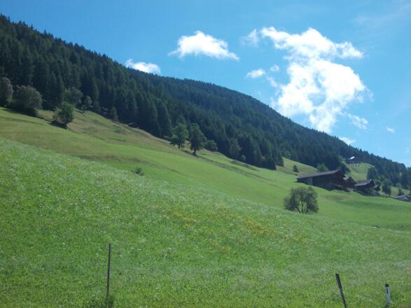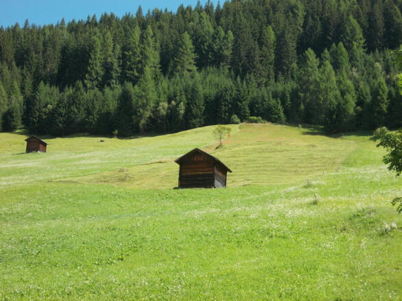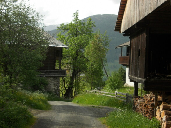 Die Tour startet beim Bahnhof Sillian, direkt an der Brücke über die Drau. Wir biegen noch vor der Brücke rechts ab und folgen dem rechten Uferweg, bis wir an eine Kreuzung gelangen, an der wir rechts abbiegen und unmittelbar danach die Bahnlinie queren. Danach halten wir uns links auf einem geschotterten Wirtschaftsweg, der in einem weiten Bogen die Wiesen quert und dann am Waldrand entlang führt. Auf einer Holzbrücke überqueren wir den „Sägebach“ und erreichen den Ortsteil Rabland. Wir bleiben südlich der Bahnlinie und durchqueren über ca. 200 m die Siedlung weiter talauswärts, danach halten wir uns rechts und leicht aufwärts auf einer asphaltierten Hofzufahrtstraße. Wir folgen dem Straßenverlauf, linker Hand treffen wir nach ca. 400 m auf eine Kapelle, an der wir nach rechts bergauf auf einen Schotterweg abbiegen. Dieser Weg ist die historische Verbindung Heinfels-Hollbruck, er bringt uns über insgesamt 4 Kehren im Wald hinauf auf das Niveau des wunderschön und aussichtsreich gelegenen Weiler Hollbruck. Wir überqueren nun fast eben die ersten Wiesen und erreichen die ersten Höfe des Tiroler Gailtals, Zenzer und Bleier. Von hier aus können wir weit hinaus ins Pustertal blicken, während sich uns gleichzeitig erstmals der Blick ins Tiroler Gailtal und auf Kartitsch, unserem Etappenziel öffnet. Wir halten uns durch Hollbruck hindurch immer an den asphaltierten Hauptweg und zweigen ca. 100 m nach der Kirche leicht rechts ab auf einen geschotterten Fahrweg, der uns direkt zwischen dem Stadel mit einer imposanten Esche und dem Wohnhaus des Schneiderhofs hindurchführt. Nach dem Hof halten wir uns links, der Weg quert die Weideflächen und führt in den Wald. Auf einem Forstweg kommen wir kurz darauf oberhalb der Schneider-Säge vorbei, halten uns danach links und queren auf einer kleinen Holzbrücke den Hollbrucker Tal- Bach. Der Weg führt nun wieder talauswärts, wir folgen der Forststraße. Es geht wieder leicht abwärts; nach etwa 1 km zweigen wir rechts auf einen gut markierten Steig ab, der hinauf in den Wald führt. An der nächsten Verzweigung kurz darauf halten wir uns links. Der Steig führt erst aufwärts und kurz drauf in kleinen Kehren und über kleine Holzbrücken wieder abwärts. Danach verlassen wir den Wald und folgen einem Wiesenweg entlang des Waldrands der "Kartitscher Schattseite", der uns Blicke auf die „Kartitscher Sonnseite“ ermöglicht. Im Ortsteil Schuster treffen wir schließlich auf eine asphaltierte Gemeindestraße, der wir nach rechts folgen. Nach ca. 275 m, direkt vor der Straßenbrücke über den Gailbach, biegen wir links auf den Wanderweg entlang des Baches ab. Wir folgen dem Gailbach bachabwärts; der Weg führt bald über eine Holzbrücke über den Bach und dann an dessen rechtem Ufer an den ehemaligen Mühlen der "Gail Höfe" und der "Wies Höfe" vorbei. Scharf rechts zurück geht es direkt oberhalb der Wies-Hof-Mühle aufwärts, über einen geschotterten Traktorweg gelangen wir nach einer Linkskurve zum Innerwies Hof. Noch vor dem großen Stallgebäude geht es rechts am Stall vorbei hinauf auf die Bundesstraße. Wir gehen nach links, ca. 90 m entlang der Bundesstraße und an der Abzweigung nach St. Oswald (nach der Bushaltestelle) halten wir uns rechts und nehmen die asphaltierte Gemeindestraße leicht aufwärts nach St. Oswald. In St. Oswald gehen wir geradeaus weiter, direkt auf die Kirche und das Gasthaus Dorfberg zu. Direkt vor dem Gasthaus geht es scharf rechts zurück durch eine Gasse zwischen den Höfen Toniger und Oberniggler, der ehemaligen „Seilergasse“. Wir gelangen so direkt zum Mesnerhof von St. Oswald, vor dem wir links aufwärts abbiegen, danach halten wir uns rechts. Nach ca. 50 m verlassen wir den geschotterten Wirtschaftsweg wieder und biegen rechts ab auf den Kartitscher Wiesenweg („Doaswolda Schteigile“- der „Oswalder Steig“). Wir folgen dem Wiesenweg - erst über das „Mesner Feld“, dann durch Wald und schließlich über die Wiesen der Kartitscher Sonnseite, eine kleinstrukturierte und landschaftlich besonders reizvolle Kulturlandschaft. Wir kommen an der Wieser Schupfe vorbei. Nach dem zweiten Hof halten wir uns links, es geht leicht aufwärts auf einem Wiesenweg weiter, vorbei an Harpfen wie der Micheler Harpfe. Direkt nach dem Obertroyer Hof gehen wir rechts über einen schmalen Wiesenpfad direkt hinunter ins Kartitscher Dorfzentrum.