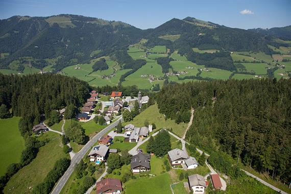 Man kommt dann direkt zum Bauernhof Schaffl. Dort auf die Asphaltstrasse unterm Gasthof Alpenrose vorbei.