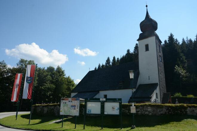 Links ca. 500m der Landesstrasse entlang und man kann auch schon wieder die Kirche sehen, und ist beim Ausgangspunkt wieder angelangt.