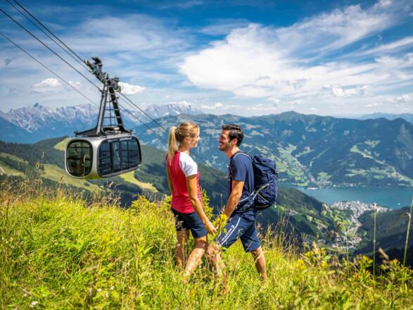 Auffahrt mit der Schmittenhöhebahn. Vom Gipfel der Schmittenhöhe (1.965 m) genießt man den Blick auf 30 Dreitausender und die