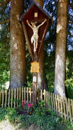 Vom Faulensee dann in Richtung Pestfriedhof wandern. Den Pestfriedhof - eine Stelle des Gedenkens an die große Pest von 1635 - können Sie nicht übersehen (Bilder in der Bilderreihe). Hier weisen mehrere Schilder in Richtung "Burgruine Hopfen".