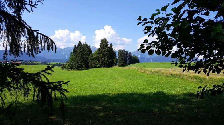 Vom Ufer des Hopfensees - mit Blick auf die Alpen - geht es zu einem weiteren See im Voralpenland, der abseits von Straßen romantisch von Fichten umgeben ist. Am Faulensee können Sie nicht nur faulenzen, sondern auch aktiv schwimmen und das kostenlos! In der Faulenseehütte gibt es dann eine zünftige Brotzeit.