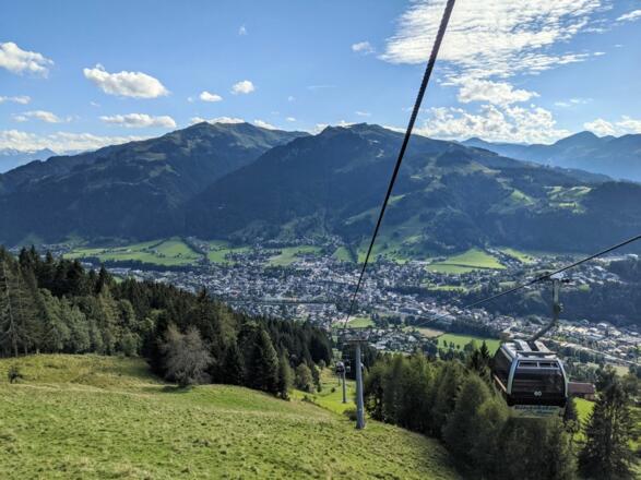 Auffahrt mit der Hornbahn I und der Horngipfelbahn zum Horngipfel.