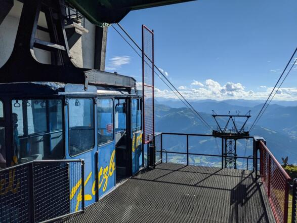 Beim Gifpelhaus angekommen nehmen sie wieder die Horngipfelbahn und Hornbahn I ins Tal.