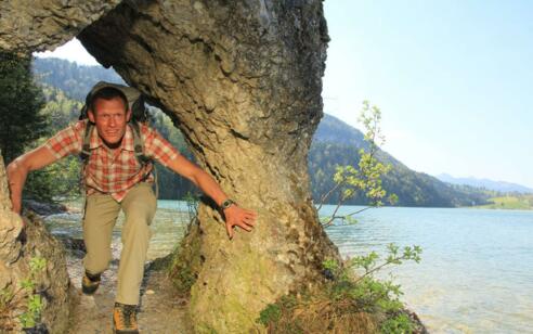 Der Hugo-Ludwig-Steg ist ein besonders schöner Aussichtspunkt auf dem Wanderweg um den Weissensee. Er liegt an einem Felsvorsprung, an der vermutlich tiefsten Stelle des Sees. Ein weiteres Highlight ist ein Felsentor, durch welches der Rundwanderweg führt.