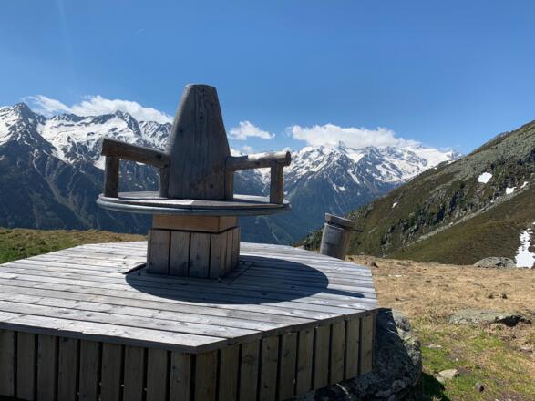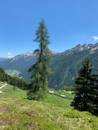 Wir starten gemütlich mit dem E-Bike direkt vom Hotel Der Stubaierhof. Über den Uferweg fahren wir zum Parkplatz Milders beim Kraftwerk! . Gemächlich ansteigend führt der Forstweg bis zur Milderaunalm. Dort angekommen parken wir die E-Bikes und nach einer kurzen Pause steigen wir noch ca.600 hm zum Naturschauplatz Hühnerspiel auf! Der Wandersteig startet direkt neben der Alm und führt auf direktem Weg zum Ziel, welches mit einem atemberaubenden 360 Grad Panorama aufwartet. Eine schwenkbare Sitzgelegenheit beim Naturschauplatz ermöglicht das Panorama in jede Richtung zu genießen.