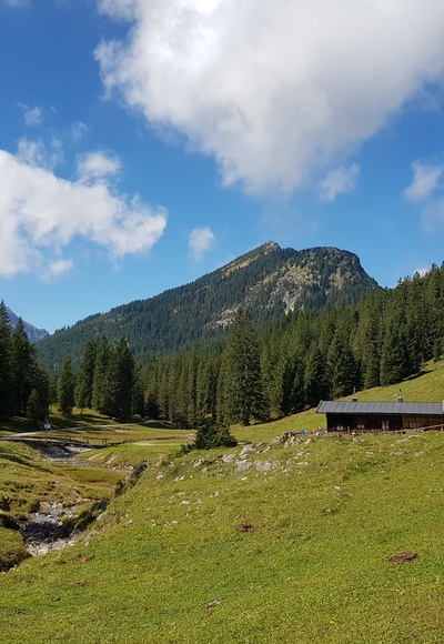 Die Jägerhütte liegt auf 1.422 Metern und befindet sich mitten im Naturschutzgebiet Ammergebirge. Das Jungvieh darfen bis Mitte September oben auf der Alm sein, bis sie beim Viehscheid wieder ins Tal getrieben werden. Die Hirten kümmern sich täglich um die Tiere.