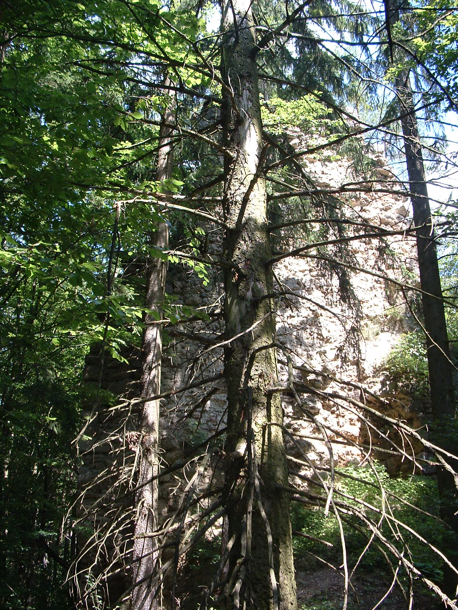Die Ruine Saxenegg (1297 erbaut) kann von hier aus, abseits des Wanderweges, erreicht werden. Es sind noch Restmauern erhalten und ein impossanter Graben rund um den ehemaligen Burgplatz.