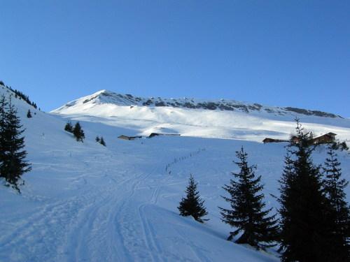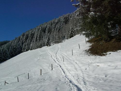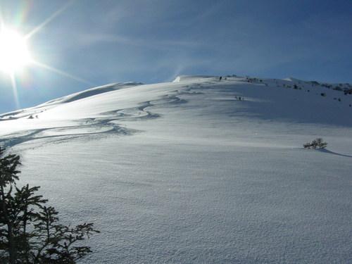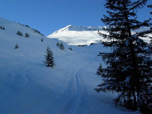 Vom Parkplatz beim Schizentrum in Angertal über die Brücke bei dem Schlepplift und dann entlang des Sommerweges durch den Karteisenwald zur Gadaunerhochalm und dann direkt auf den Gipfel zu , der entweder über den NO oder SO Rücken erstiegen wird. Die Abfahrt geht bei guten Schneeverhältnissen auch direkt zwischen den N und S Rücken über die offenen Wiesenhänge hinunter zum Laffenbach der bei einer Brücke überquert wird und dann entlang des Forstweges bis zur Skipiste und die letzten Meter über die Skipiste zurück zum Parkplatz. Wenn die offenen Wiesenhänge über die Gadaunerhochalm schon sehr zerfahren sind besteht die Möglichkeit von P2054 den wunderbar geneigten Rücken zum Wald hinunter und dann durch den Wald wieder zum Bach zu fahren.