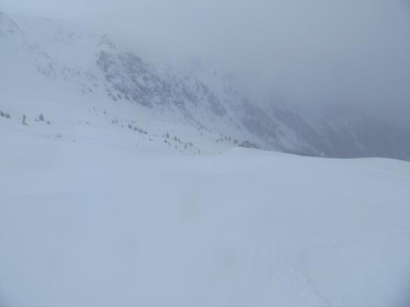 Der Abstieg kann bei sicheren Verhältnissen auch nach links unterhalb der Wände der Körlspitz bis zur Tschnernied Alm erfolgen.