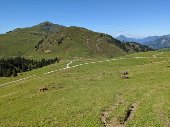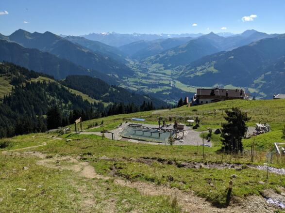 Der Karstein ist ein lohnendes Ziel im Frühjahr für Blumenliebhaber (die blauen Enzianpolster lassen das Herz eines jeden Blumenliebhabers schneller schlagen). Das Gipfelpanorama lässt den Blick auf Loferer und Leoganger Steinberge sowie auf Berchtesgadener und Chiemgauer Alpen, Wilder Kaiser, Kitzbüheler Wanderberge, Niedere Tauern, Glockner und Venedigergruppe zu. Käse- und Milchprodukte werden direkt an der Lämmerbichlalm vermarktet, davor muss man natürlich unbedingt die verschiedenen Käsesorten an Ort und Stelle ausprobieren. Dazu gibt es selbst gebackenes Bauernbrot. Lassen Sie sich doch auf der Alm kulinarisch verwöhnen. Start der Wanderung ist der Parkplatz der Bergbahn AG Kitzbühel, . Der Weg führt uns über die Asphaltstrasse nach Oberaigen vorbei an der Sonnbergstub’n, welche bekannt ist durch die singende Wirtin Rosi. Man sollte auf alle Fälle die Zeit einplanen, am Rückweg bei ihr einzukehren. Wir folgen der Beschilderung Richtung Bichlalm. Nach ca. 300 Metern Asphaltstrasse biegen wir links den Wegweiser folgend auf den Almweg Richtung Bichlalm ab. Nach ca. 1 Stunde Aufstieg erreichen wir die Bichlalm und müssen noch ca. 15 min. weiter aufsteigen nach Lämmerbichlalm, Karstein. Auf dem Sattel zwischen Hochetzkogel und Stuckkogel lädt uns der herrliche Blick Richtung Hohe Tauern, Wilder Kaiser und Loferer Steinberge kurz zum Verweilen ein, bevor wir dann den Abstieg zur Lämmerbichlalm weiter fortsetzen. Auf diesem Weg wandern wir an der Lämmerbichlkapelle vorbei und lassen die Lämmerbichlalm (eigene Käserei) auf der linken Seite liegen und setzen die Wanderung Richtung Karstein fort. Der Gipfelanstieg erfolgt über herrliche aber stetig ansteigende Almwiesen. Am Gipfel angekommen belohnt uns ein herrlicher Ausblick vom Hochkönig bis Loferer Steinberge, Wilder Kaiser, Hahnenkamm, Steinbergkogel und Teile der Hohen Tauern, sowie in der Nähe den Hoher Mahdstein und Wildseeloder.Am Rückweg steht bei der Bichalm ein Kneipp Becken für die müden Füsse bereit, eine willkommene Erfrischung.