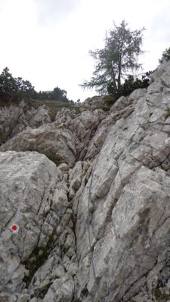 Streckenbeschreibung: Nach einer Nacht auf der Bettelwurfhütte, dem Adlerhorst des Karwendels, geht es für alle konditionsstarken BergsteigerInnen, die sich fit fühlen und über das nötige körperliche und technische Rüstzeug verfügen, optional auf den Großen Bettelwurf. Zuerst geht man ostwärts, gut ausgeschildert, in den Graben, wo der Steig aus dem Halltal heraufführt und dann weiter ansteigend südostwärts zum „Eisengattergrat“, dem Südrücken des Großen Bettelwurfs. Von hier aus hält man sich nördlich, stetig am Eisengattergrat bergan, Richtung Gipfel bis zum Felsansatz und den ersten drahtseilversicherten Passagen. Die folgende, teilweise versicherte und teils in leichter Kletterei (I) zu überwindende Steiganlage in gut griffigem Kalkgestein, führt nun meist rechts einer schräg herabziehenden Rinne bis zum Gipfelgrat und überwindet dabei einige teils ausgesetzte Felsbänder. Eine Klettersteigausrüstung samt Helm wird hierfür ausdrücklich empfohlen. Nach oben hin wird der Steig etwas steiler. Kurz unterhalb des Gipfelgrates teilt sich der Steig, wobei der von unten gesehen linke Steig leichter zu begehen ist. Am Gipfelgrat hält man sich nach Osten und gelangt über ein schmaleres, nach beiden Seiten ausgesetztes Gratstück, bis zum Gipfelkreuz. Vom Gipfel geht es auf gleichem Weg wieder retour zur Bettelwurfhütte.