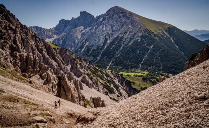 Die zweite Etappe des Karwendel Höhenwegs führt über den Ursprungsattel und die Eppzirler Scharte zum Solsteinhaus.