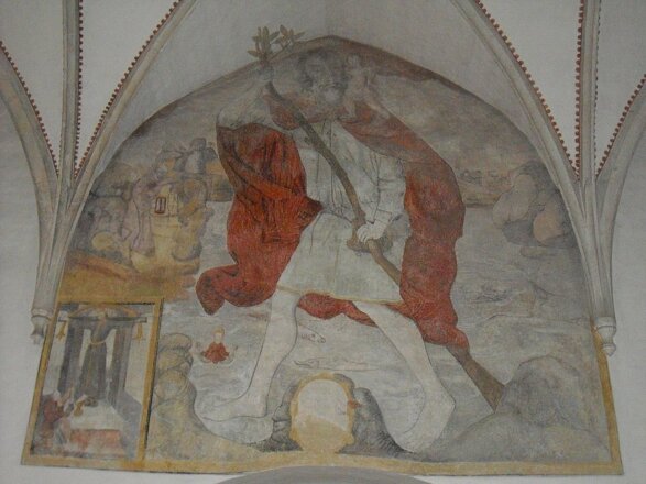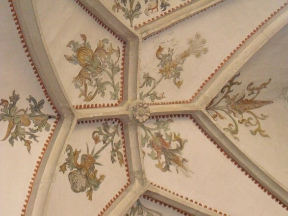 Der Kirchenbau stammt im Wesentlichen aus dem 15. Jahrhundert, während der Turm 1538 – 1558 auf spätromanischem Unterbau neu errichtet wurde. Bemerkenswert sind die zahlreichen gut erhaltenen, spätgotischen Wand- und Deckenmalereien aus dem letzten Drittel des 15. und ersten Drittel des 16. Jahrhunderts.