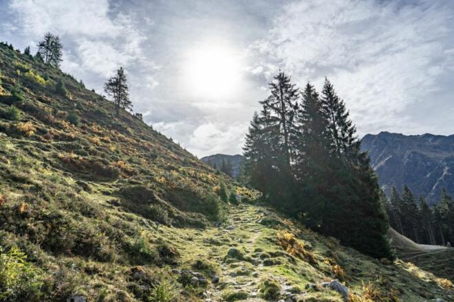 :: Retour geht es mit einer Überschreitung des Tristkogels; der Weg führt uns über das Saaljoch in Richtung Oberkaser-Alm entlang eines interessanten historischen Weges zur Kelchalm.