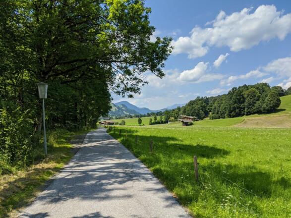 :: Wir starten bei Kitzbühel Tourismus im Zentrum von Kitzbühel. Mit unseren Mountain Elektrorädern fahren wir an der Ache entlang nach Aurach.