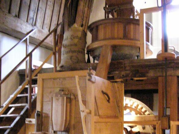 In der Getreidemühle wird die Technik eines altdeutschen Steinmahlgangs der Technik des 20. Jahrhunderts gegenübergestellt.