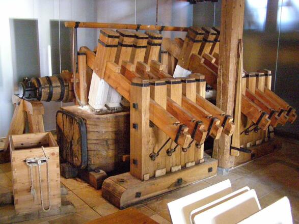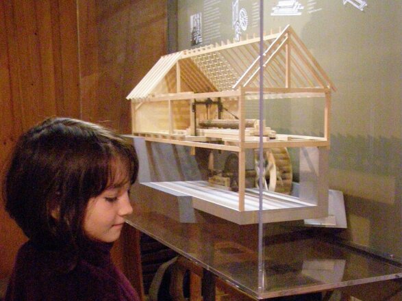 An einem Modell kann der Besucher sich schließlich auf Knopfdruck einen Eindruck von einer wassergetriebenen sogenannten „Deutschen Sägemühle“ verschaffen.