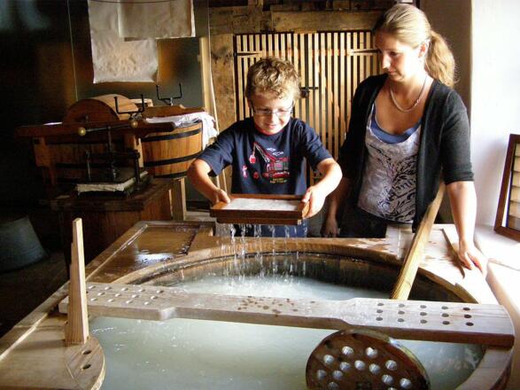 Früher wurde Papier nicht aus Holz oder Zellulose, sondern aus alten Lumpen gemacht. Der Lumpensammler brachte die Lumpen in die Papiermühle, wo sie gereinigt, in kleine Stücke zerrissen und angefault wurden, bis das Gewebe weich und morsch war. Dann kam die Lumpenmasse in das Hadernstampfwerk und wurde zu einer breiigen Masse zerstampft. Diese Masse kam dann in die Bütte, wurde mit Wasser verdünnt – nun konnte daraus mit speziellen Sieben Papier geschöpft werden. Diese Technik wird heute noch im Klostermühlenmuseum Thierhaupten vorgeführt und Besucher können nach Voranmeldung auch selbst Papierschöpfen.