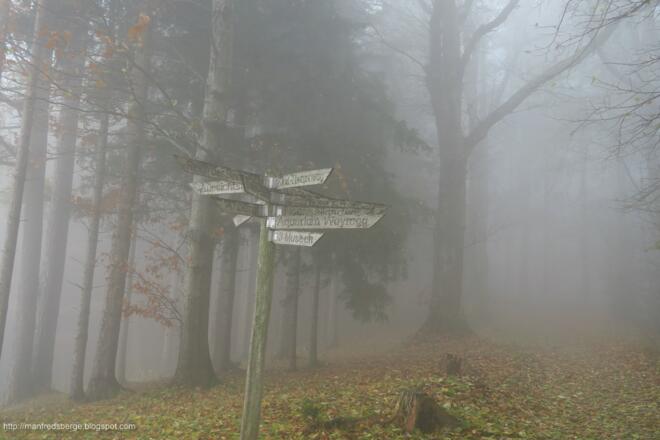 Aussicht gibt es meist nicht viel, weil man viel durch den Wald geht. D.h. auch am Gipfel keine Aussicht.