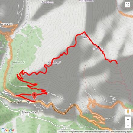 Von Spiss aus wandert man entlang der gemächlich ansteigenden Forststrasse durch den Bannwald. Der Weg zweigt dann links ab auf einen Pfad, der über blühende Alpweiden zum Muttakopf hinauf führt. Der Muttakopf bietet einen schönen Rundblick auf das Samnauntal, das Val Sampuoir, ins Zandertal und die umliegende Bergwelt. Ab hier geht es dem Grat entlang über „in der Keil“ zum Kreuzjoch, von wo aus man einen schönen Rundblick auf den Reschensee, das obere Inntal und das Unterengadin geniesst. Zurück geht es entweder auf dem gleichen Weg oder über den steilen Abstieg zur Kobler Alpe und via Gstalda zurück nach Spiss.