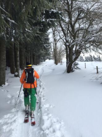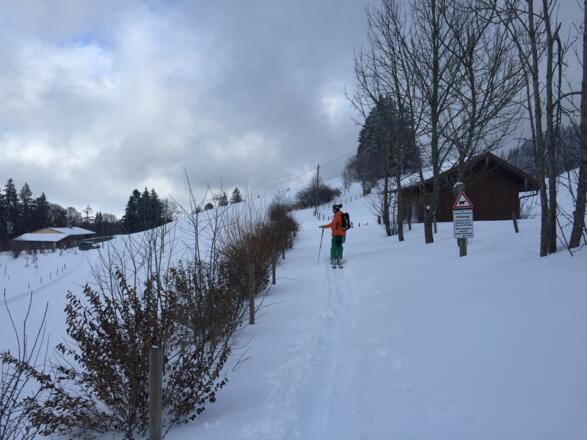 Wir haben anfangs den Fahrweg verlassen und sind am Pisten-/Waldrand aufgestiegen. Teils flach ansteigendes Gelände - ab und an kurze, steilere Passagen zu bewältigen