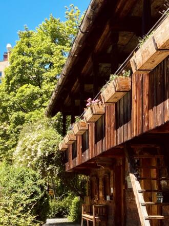 Im 18. Jahrhundert erbaute Herberge im Stil eines alpenländischen Bauernhofs.