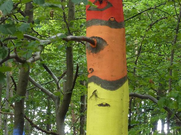 LandArt am Riesrand Die beiden Künstlerinnen Elke Stadlmayr und Karin Bergdolt wollten mit dem Projekt Kunstwald einen Verbindung von Natur und Kunst schaffen und für den Besucher eine neue Erfahrung