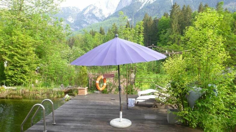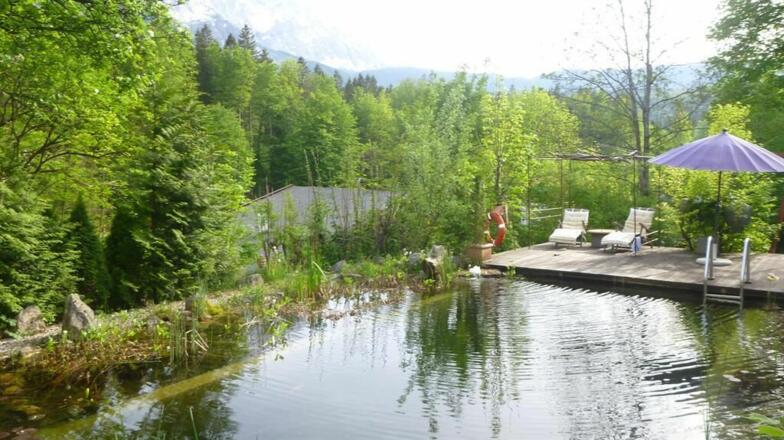 Mediterranes Flair am Fuße der Zugspitze, ein romantisches Chalet für 2 und die Sommerhütte ebenfalls für 2 auf 2700 qm Grund. Schwimmteich, Liegewiese, Parkplatz am Haus. Genießt den herrlichen Bergblick . Beide Hüttchen mit Balkon oder Terrasse. Mit viel Liebe zu Detail eingerichtet könnt Ihr hier unbeschwerte Zeit verbringen.