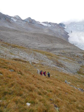 Man kann auch nach Süden in Richtung Stettiner Hütte gehen, was kürzer ist. Ab Sommer 2018 ist wieder ein geregelter Übernachtungsbetrieb auf der Stettiner Hütte möglich. Es stehen sowohl Plätze in der provisorischen Hütte als auch Plätze in Holzpavillons zur Verfügung.