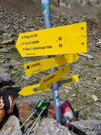 Wir haben die fade Forststraße von Prägraten bis zur Lasnitzenhütte in 1,5h / 6km mit dem Rad bewältigt, zu Fuß sind es 2h zu Fuß). Ab der Lasnitzehütte (bewirtschaftet, 20 Schlafplätze) gehts über einen schönen Wanderweg stetig ansteigend in das Hintergalts. Ab Höhe 2500 führt der Weg steinschlagfrei über einen grasigen Rücken, ab 2800 gehts über felsdruchsetzten Gelände, einige Seilversicherungen, steinschlaggefährdet auf den Kamm. Entlang dem Kamm gut griffig und über den Normalweg auf den Gipfel (3h ab Lasnitzenhütte). Abstieg über den Normalweg, Steinschlaggefahr! Markierten Weg bis zur Abzweigung bei 2640m im Glauert Kar, ca. 180Hm Anstieg zum Abstieg Prägrater Törl 2853m, teilweise sehr ausgesetzer und steiler Rücken über das Mittagskögele und über den steilen nordseitigen Wiesenweg wieder retour zur Aufstiegsroute und zur Lasnitzenhütte (3-3,5h ab Lasörling Gipfel). Ab der Hütte in 1,5h zu Fuß retoru bis zum Parkplatz nach Prägraten, wir genießen die rasche Talfahrt mit dem Rad.
