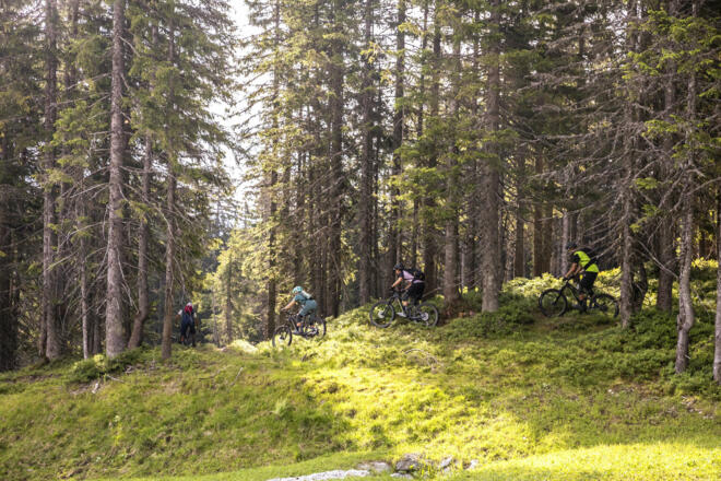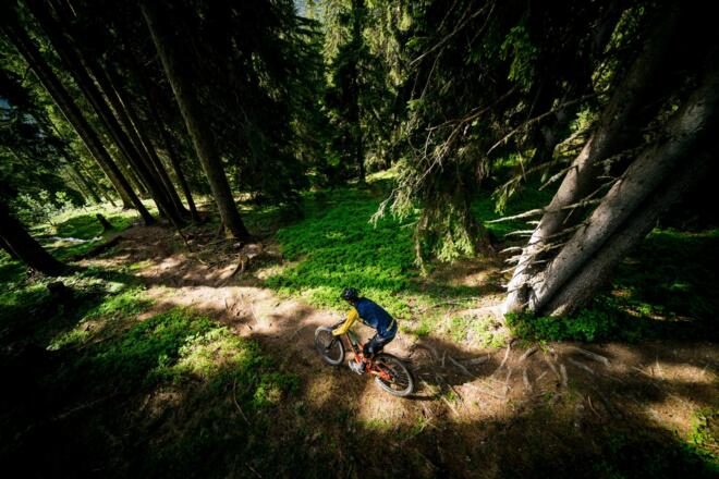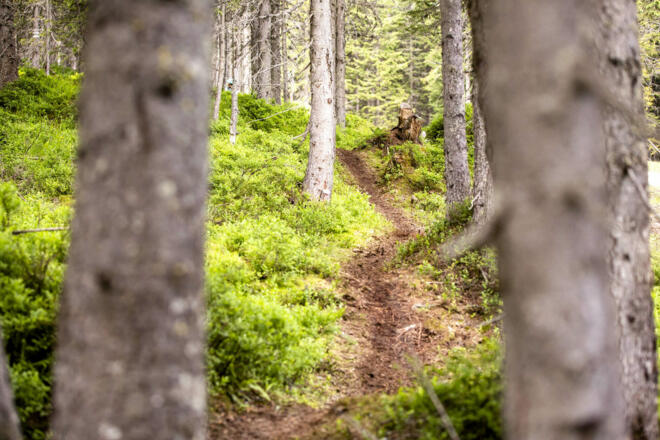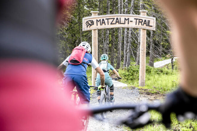 Der Matzalm Trail war der erste seiner Klasse und ist wie seine "Brüder" Schwarzleo-, Forsthof und Knappentrail ein naturbelassener Single Trail, der nur von Hand erbaut wurde. Northshores, knifflige Turns, Wurzelpassagen, Farnwiesen und offene Almwiesen mit traumhaftem Blick auf die Leoganger Steinberge, das Steinerne Meer und den Hochkönig - was will das Herz mehr?