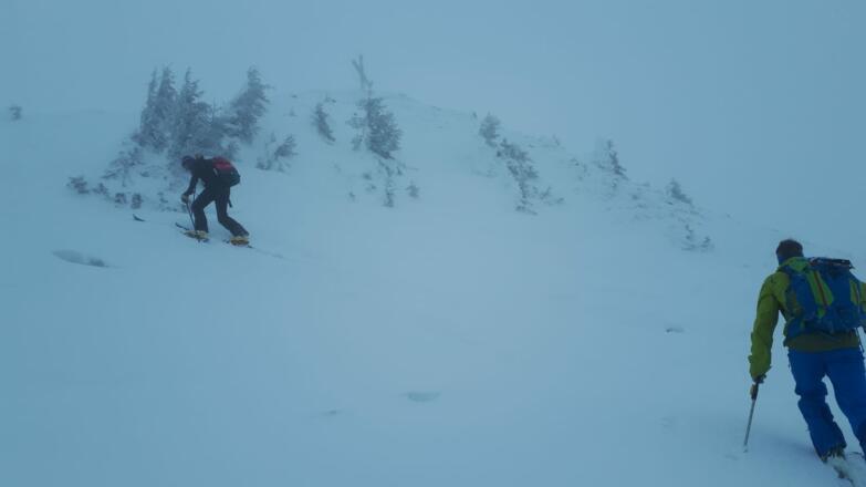 Jetzt ist es wieder flacher und man geht noch südwestlich bis man eine gute Spur auf den Gipfel anlgen kann.