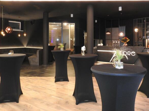 Bereich kann auch mit Stehtischen ausgestattet werden