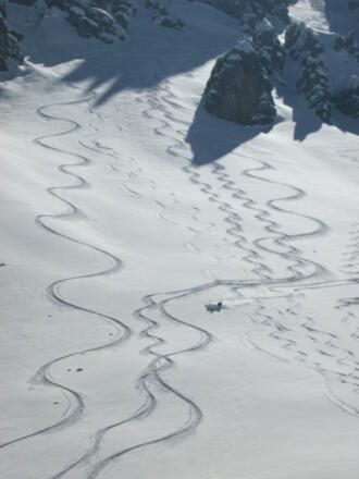 Steile Skitour, die in unmittelbarer Nachbarschaft des Skigebiets Einsamkeit und eine fantastische Aussicht bietet.